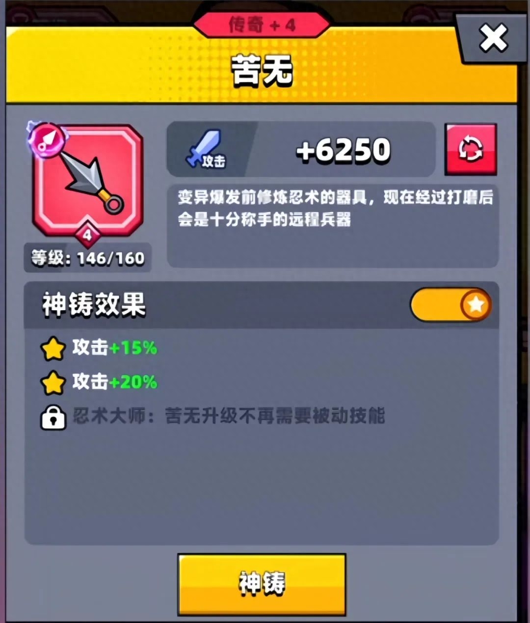 我们先看看苦无的神铸效果:
