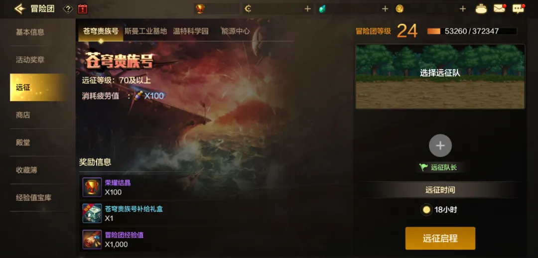 新版本中移除了原有远征地区,并新增了4种远征地区:苍穹贵族号、斯曼工业基地、温特科学园、能源中心。