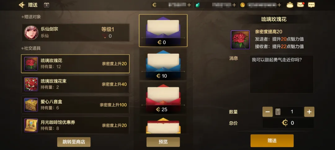 版本更新后,好友赠礼界面将进行优化:勇士们选择好友点击赠送后将直接打开赠送页面,若已拥有礼物道具,可在该界面直接使用,没有相应道具时可进行快捷购买。