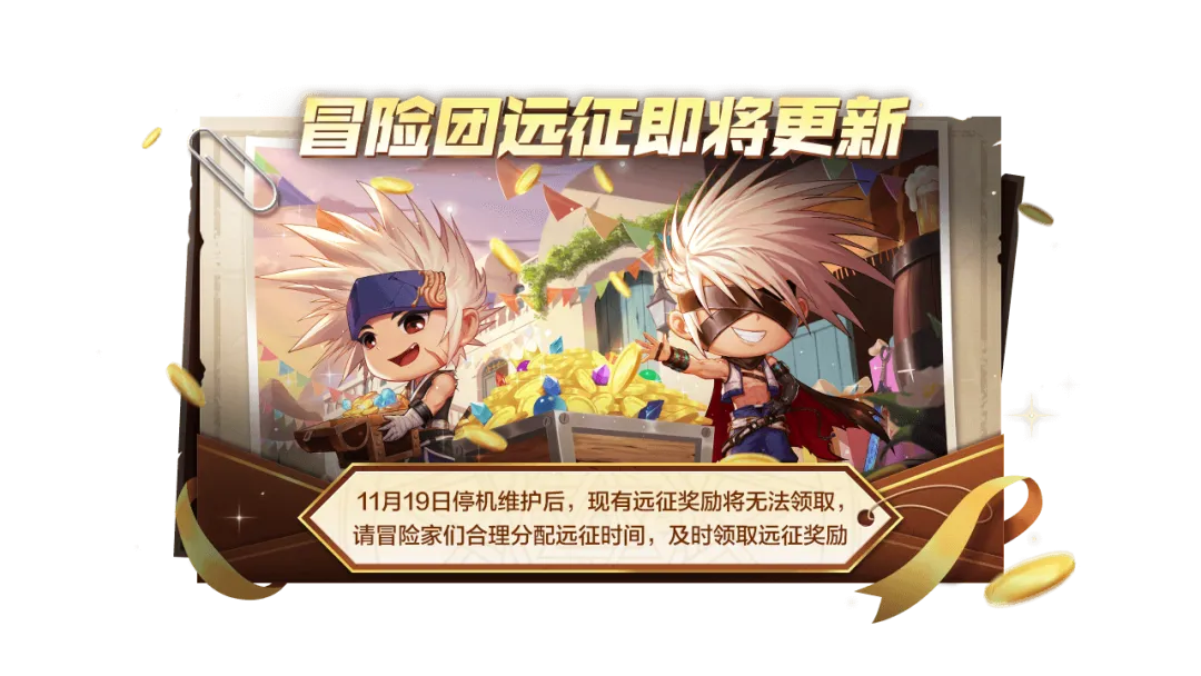 小老D重点提醒:11月19日停机维护后,现有远征奖励将无法领取,请冒险家们合理分配远征时间,及时领取远征奖励哦!