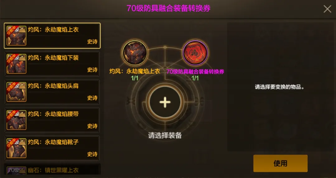70级防具融合装备转换券优化