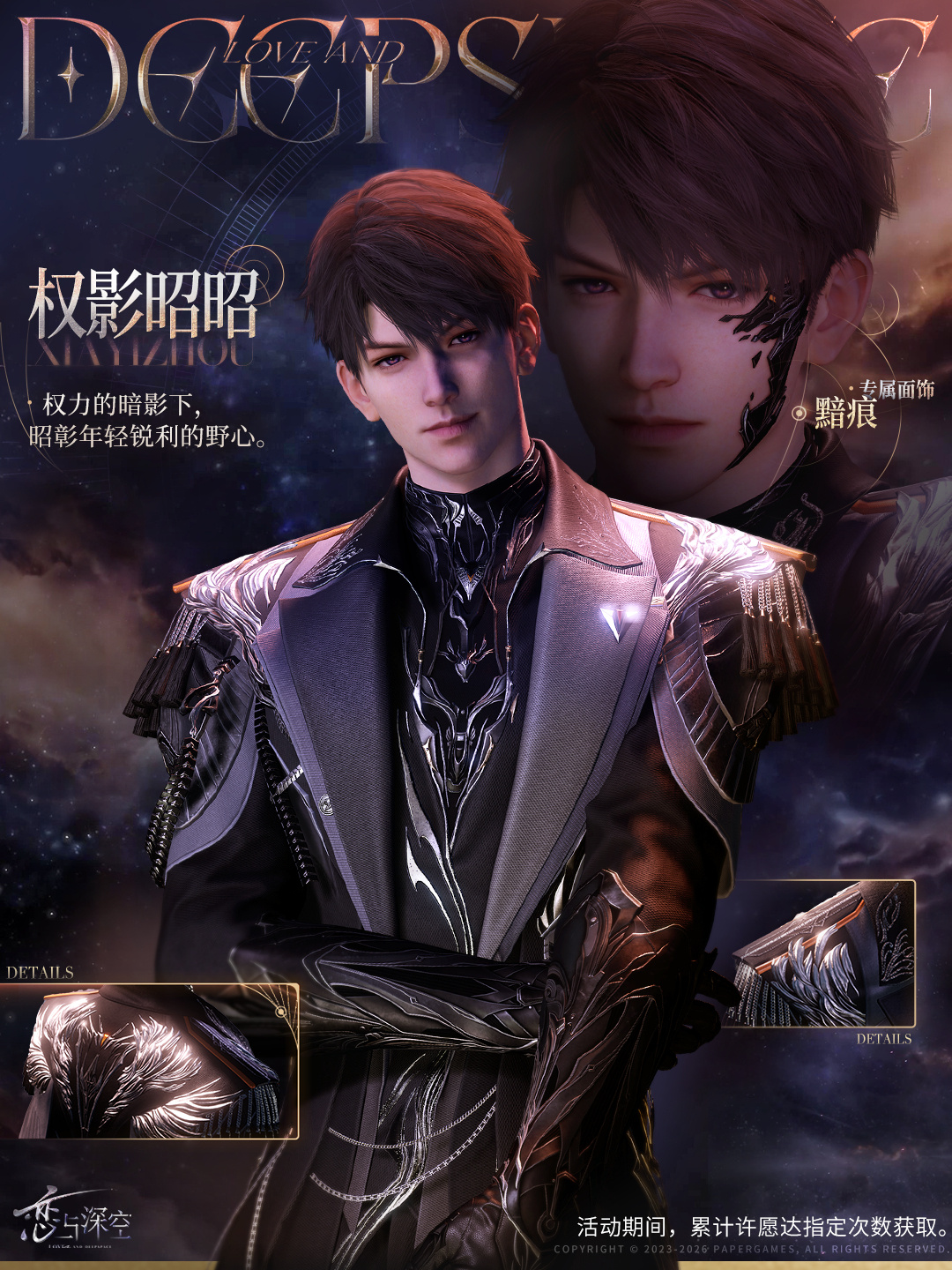 累计活动许愿达75、125、175、225、275次时,可分别从当期男主「活动思念配套服饰」中自选一套获取;