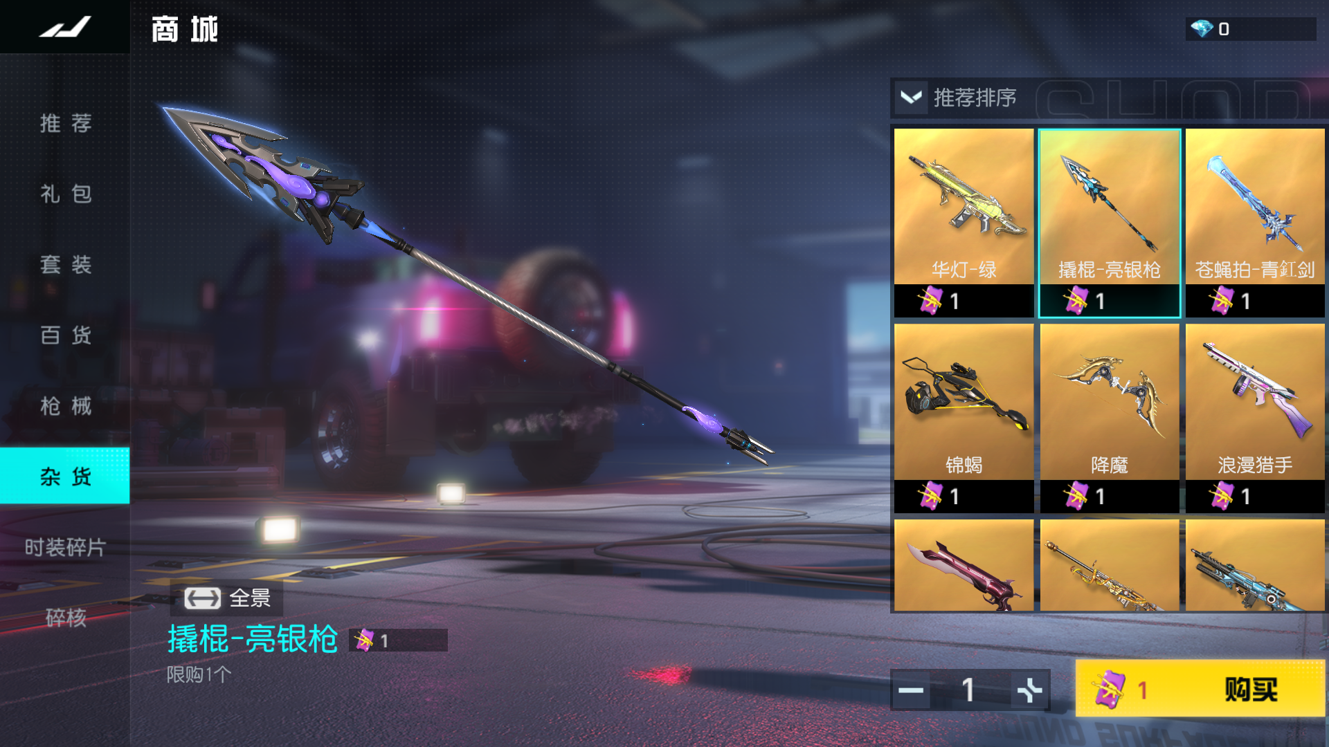新增橙色武器-亮银枪,橙色武器-撬棍,橙色枪械-华灯-绿,可以消耗橙色载具任选券兑换。