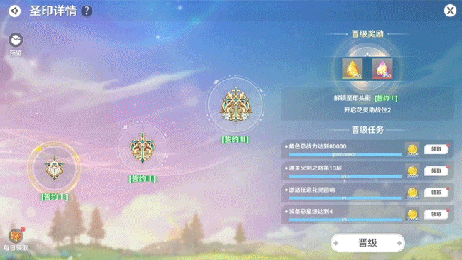 ▼重做了圣印和升级的动画、奖励、晋级标识,让大家的养成目标更清晰、升级反馈更明显