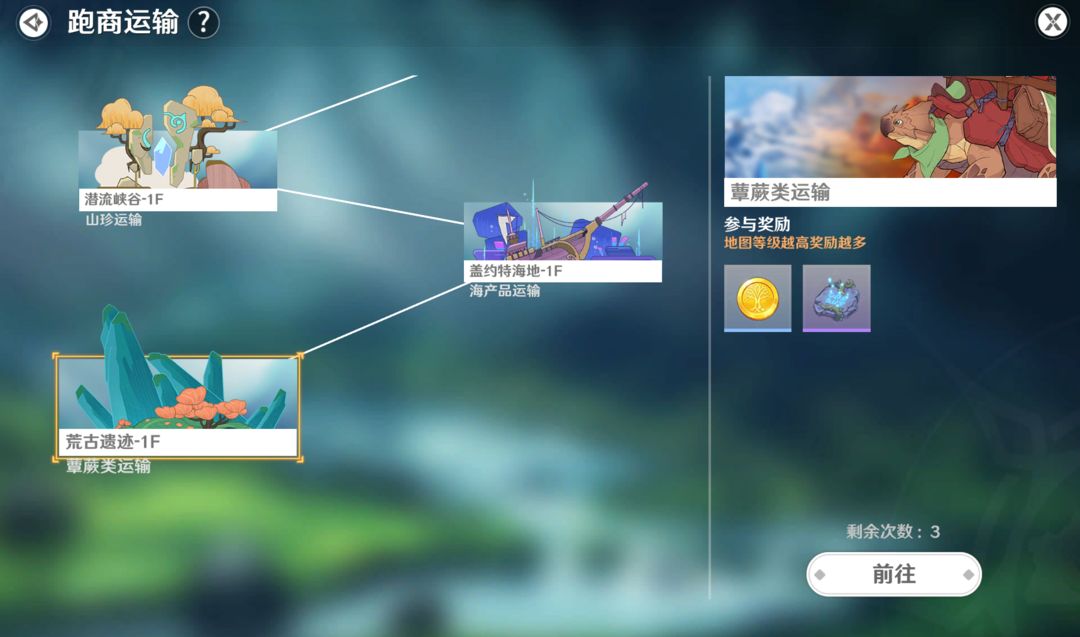 ▼每日跑商次数从3次降低为2次,每次完成奖励提升,让大家可以用更少的时间获得更多的收益