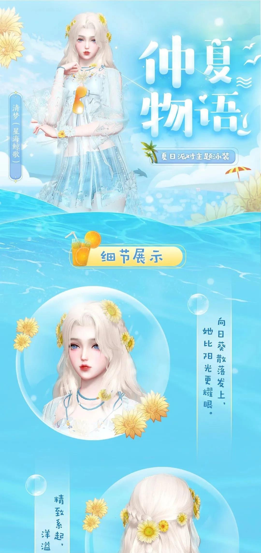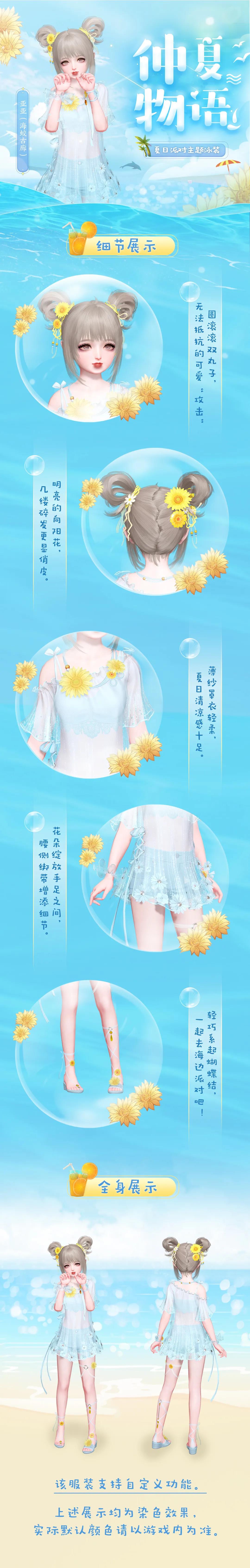 以阳光灿烂的向日葵为元素,本期推出了清爽休闲的「夏日派对」主题泳装,还有一系列向日葵饰品&夏日坐骑上线!