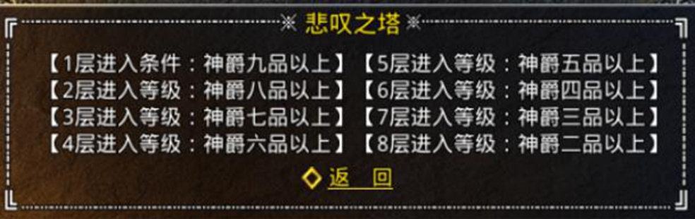 同时第三大陆—悲叹之塔进入条件也需要神爵的品阶需求。