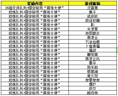①随机抽取1位大侠获得:35抽天选礼包+限定称号“宣传大使”(30天)