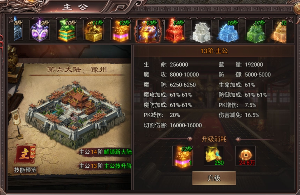 除装备以外,游戏中还有丰富的游戏系统可以提升大量战力。前期可以快速提升战力的系统则是“骑战”、“战鼓”和“主公”系统。通过骑术要诀、战鼓之心和国之秘卷等材料合成升级获得大量三维属性、pk加成以及百分比属性加成。因为升级需要消耗传奇币,在传奇币有限的情况下推荐喜欢打BOSS的兄弟前期优先升级“主公印玺”,高阶的主公印玺可解锁入更高级的大陆与主公-赤壁地图,地图里面都是BOSS首领,可以让你有更多的BOSS资源可以获取。