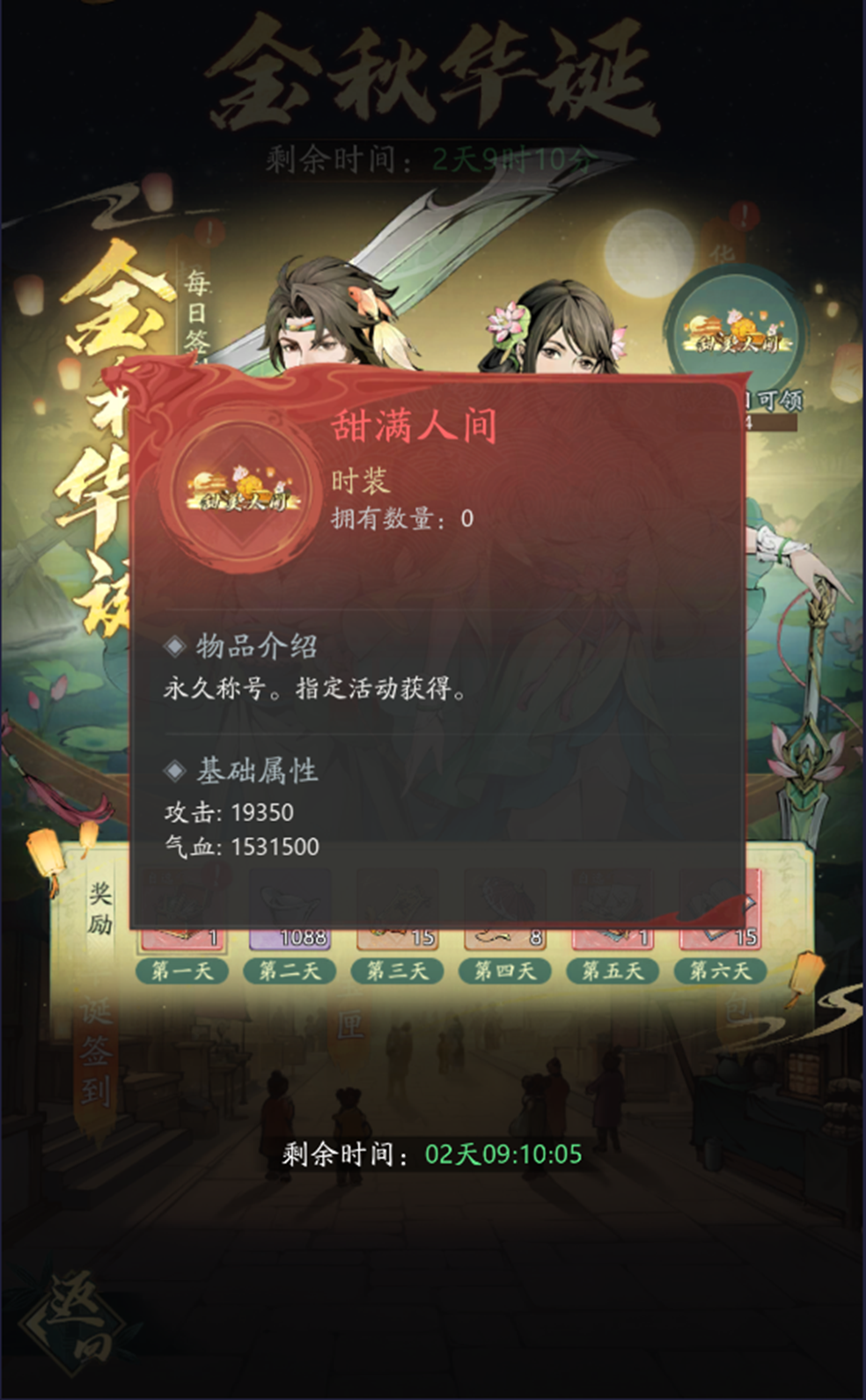 活动期间每日登陆即可领取豪华大奖,登陆达到累计4天可获得限定称号《甜美人间》