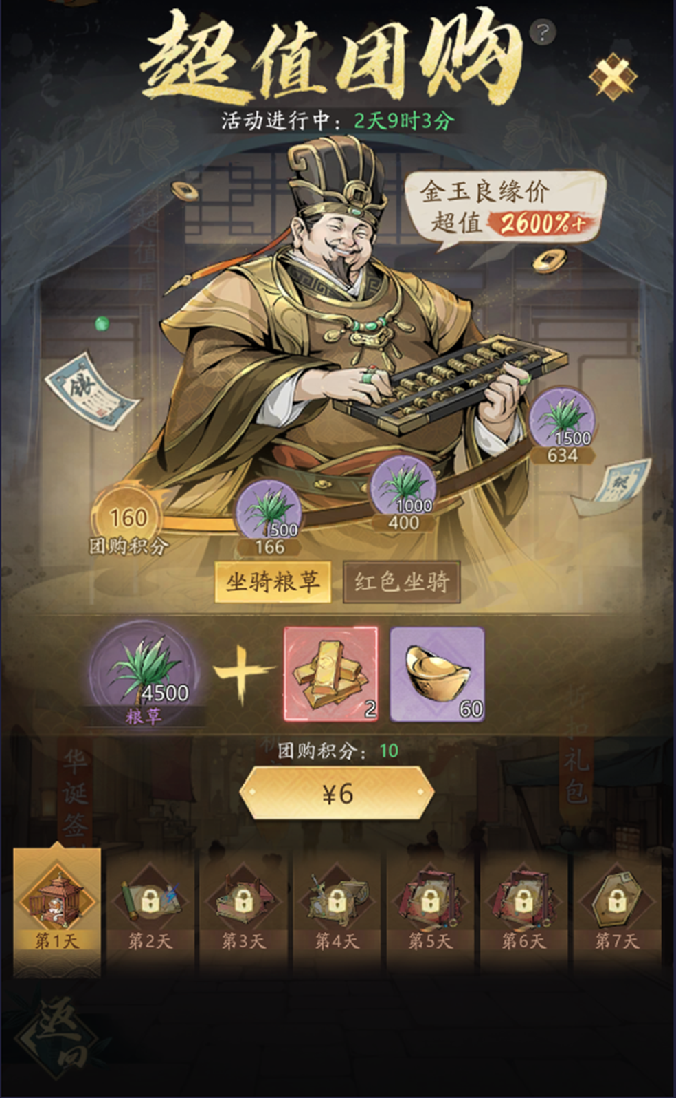 活动期间每天解锁一种团购礼包的购买,全服购买积分达到一定档次还可获得超级福利