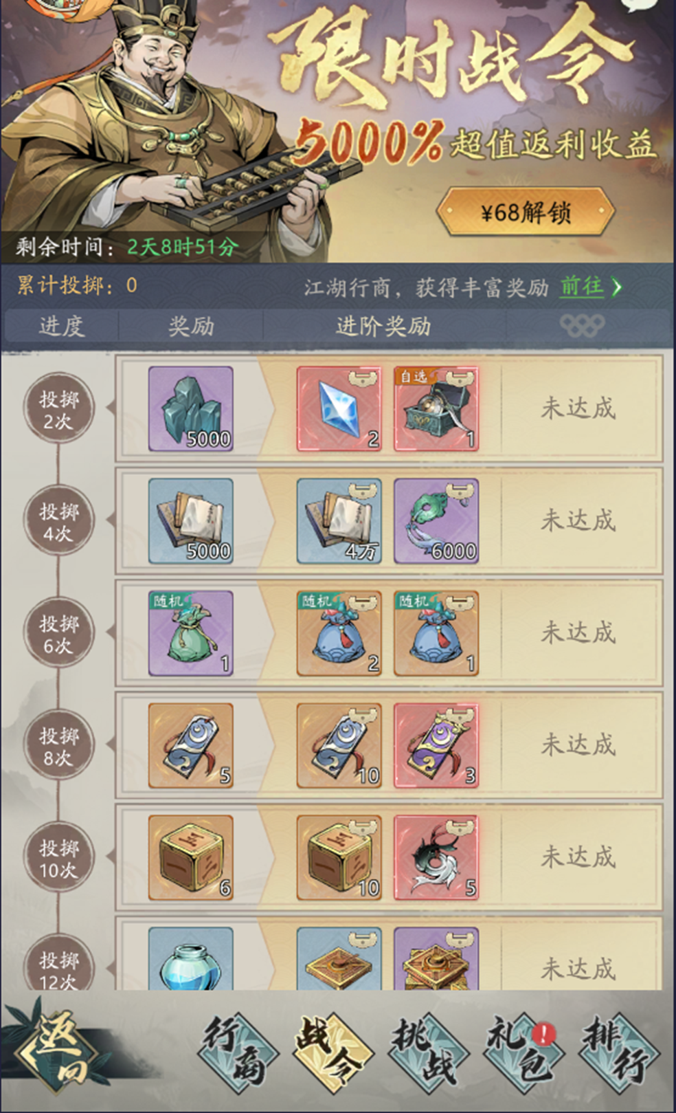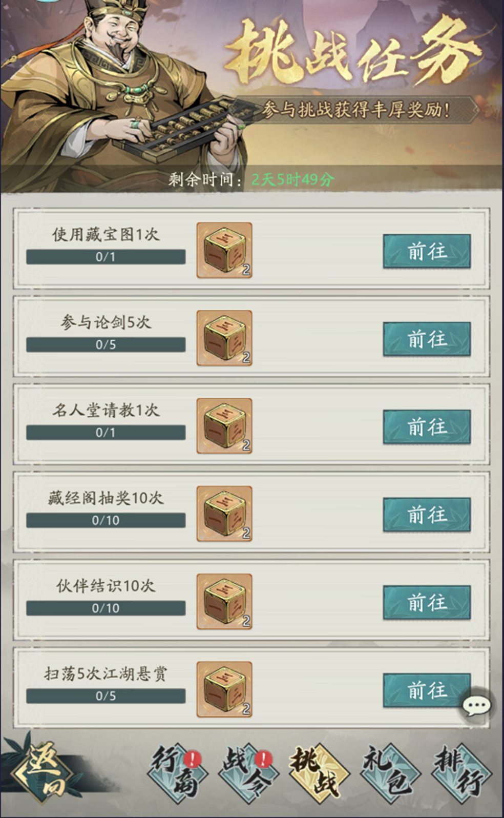 3.活动期间参与完成挑战可领取一定数量的随机骰子,用于行商活动前进。