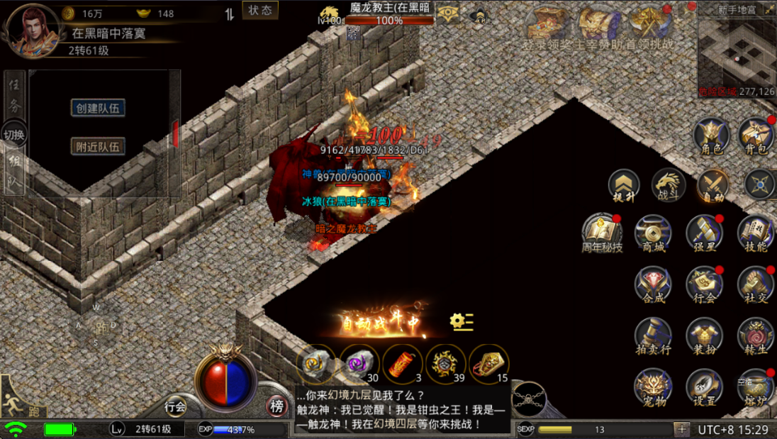 开服15天内玩家随便什么时间段进入,进入后不限制时间,里面主要击杀变异魔龙战将和暗之魔龙教主,玩家可以使用任何模式进行抢怪。