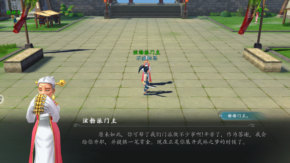 1.关键任务发布:等级达到 10 级时,玩家会收到门主的传书,接取职业生涯中第一次升职任务,完成后可提升人物名声,为后续成长打下基础。此外,她还会根据玩家等级发放跑环任务,是前期获取经验、银两和基础道具的重要途径。