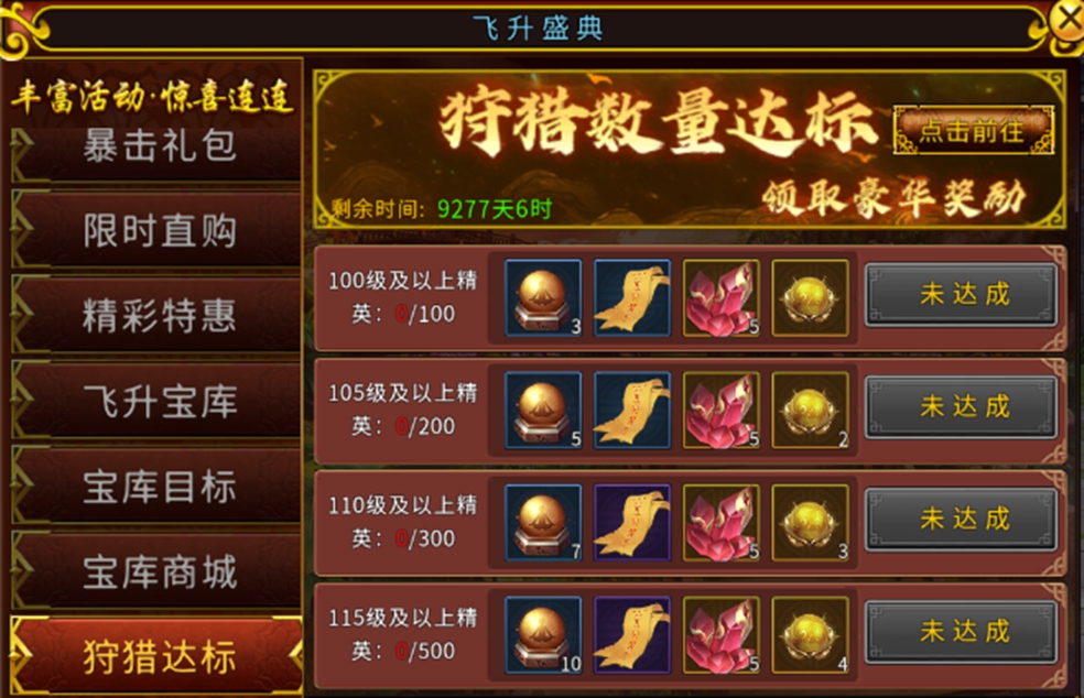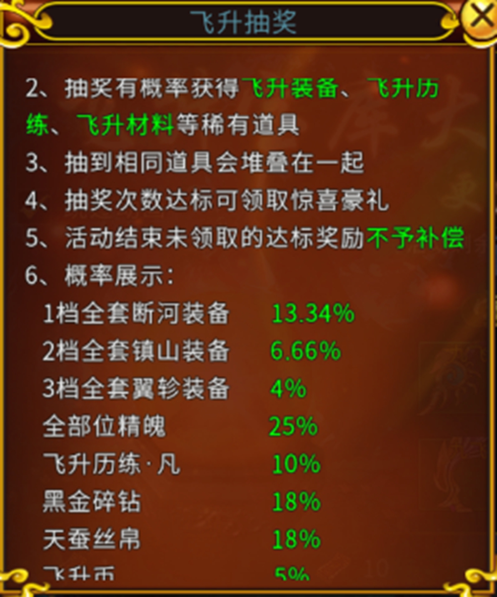 以上就是关于飞升盛典中的所有活动板块介绍了,暴击礼包可谓是该活动中最具性价比的了,飞升抽奖券对于飞升币的获得也具有间接的关系。最后祝大家开启飞升盛典活动后能早日达到狩猎达标领取所有达标的奖励!