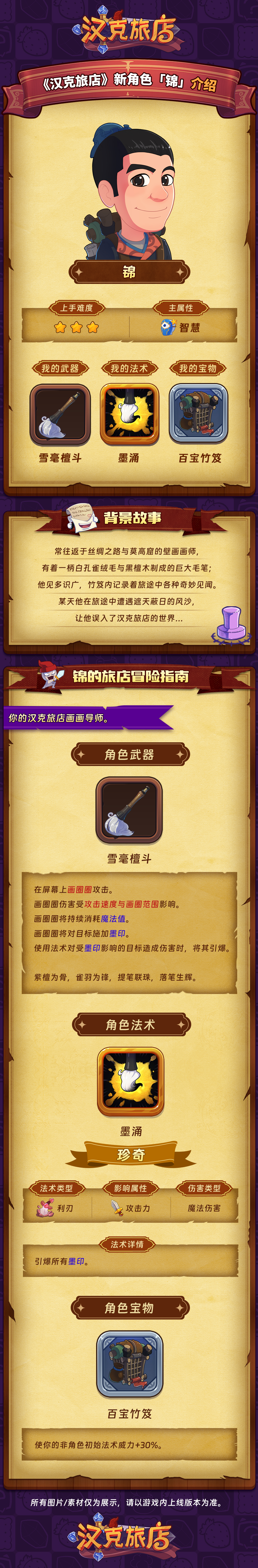 - 新角色「锦」。「锦」在活动期间会有特殊的长衫装扮,活动结束后换回常服,角色具体介绍详见下文;