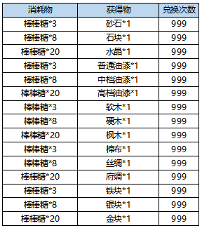 (注意:1.该活动为每日0点重置;2.棒棒糖:用于棒棒糖兑换活动兑换材料)
