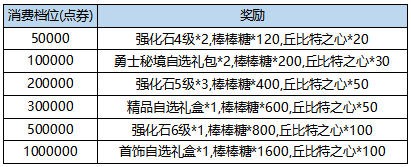 活动规则:活动期间,累计充值点券达到指定额度,即可获得对应档位的奖励。