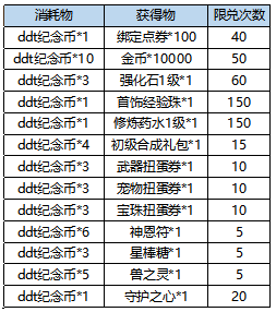 活动规则:消耗ddt纪念币,兑换好物,每档兑换均有不同次数的限制。