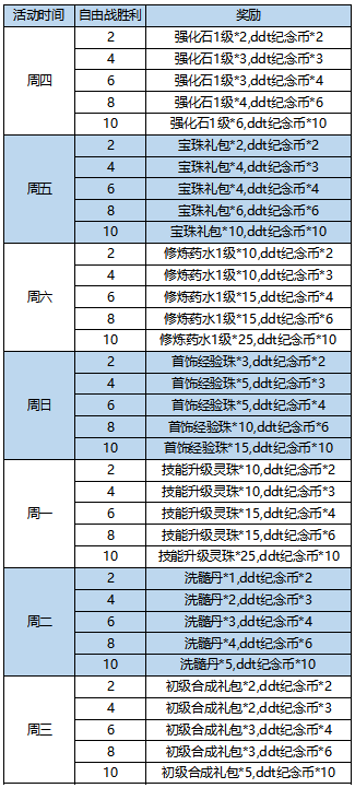活动规则:活动期间,自由战获胜达到指定的次数,即可获得对应阶段的奖励。