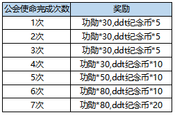 活动规则:活动期间,完成公会使命达到指定的次数,即可获得对应阶段的奖励。
