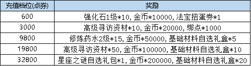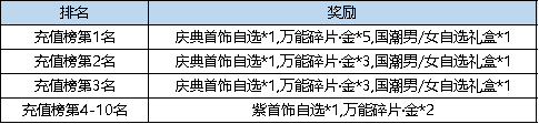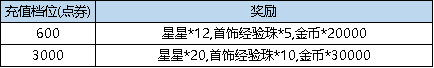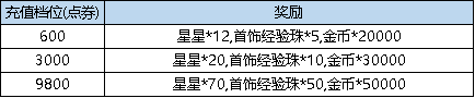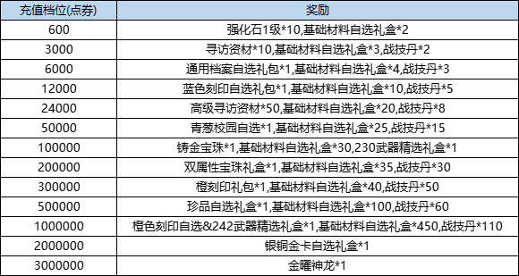 活动规则:活动期间,累计充值点券达到指定额度,即可获得对应档位的奖励。