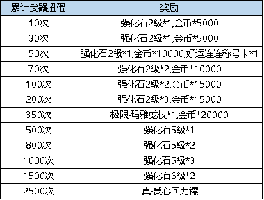 活动规则:活动期间内,进行武器扭蛋达到指定次数即可领取奖励。