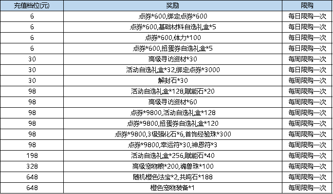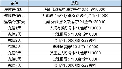 活动规则:活动期间,累计充值点券达到指定额度,即可获得对应档位的奖励。(活动周一、二、三、四、五每日重置,周六周日下架)