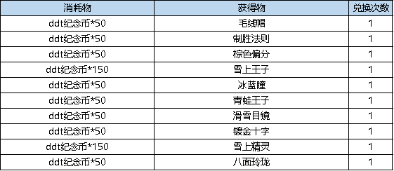 活动规则:消耗ddt纪念币道具可兑换周年狂欢男/女