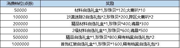 活动规则:活动期间内,每日累计消费点券达到指定额度,即可获得对应档位的奖励。(注意:1.该活动为每日0点重置;2.珍珠贝:用于珍珠贝兑换活动兑换材料)