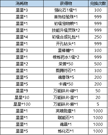 活动规则:消耗星星道具可兑换特殊活动奖励