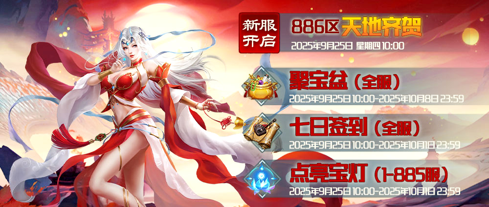 新服开启:9月25日,周四上午10点开放新区886:天地齐贺
