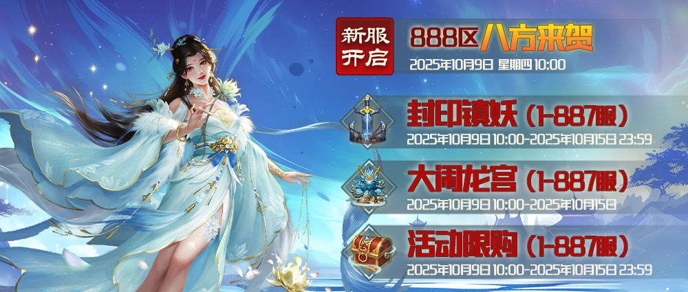 新服开启:10月9日,周四上午10点开放新区888服:八方来贺