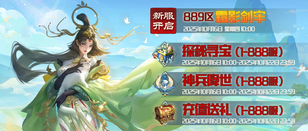 新服开启:10月16日,周四上午10点开新区889:霜影剑牢