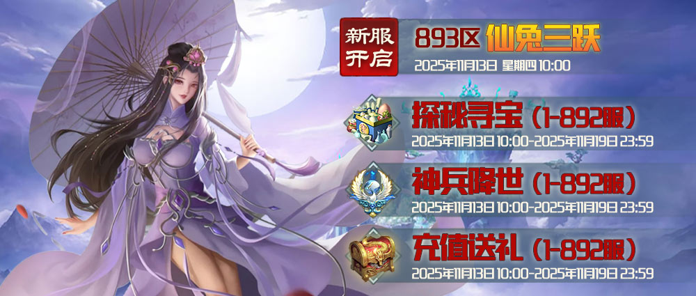 新服开启:11月13日,周四上午10点开新区893:仙兔三跃