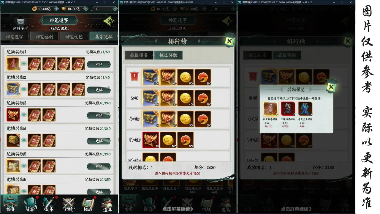 4.修复总战力和排行榜战力显示不一致问题;