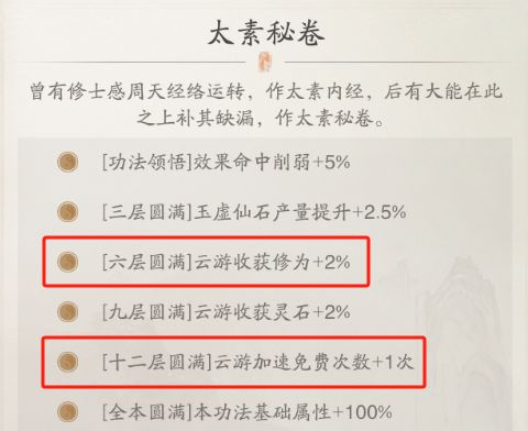 3.道友在解锁部分功法的关键节点,或获得特定古宝后,可增加加速的次数上限以及加速的修为量加成,建议优先提升