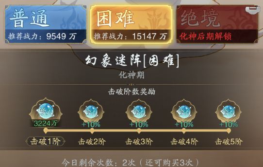 2.在突破大境界时(如结丹突破至元婴),免费的2次挑战次数会刷新,道友务必记得在突破前把挑战次数用掉(购买的造化次数不会刷新)