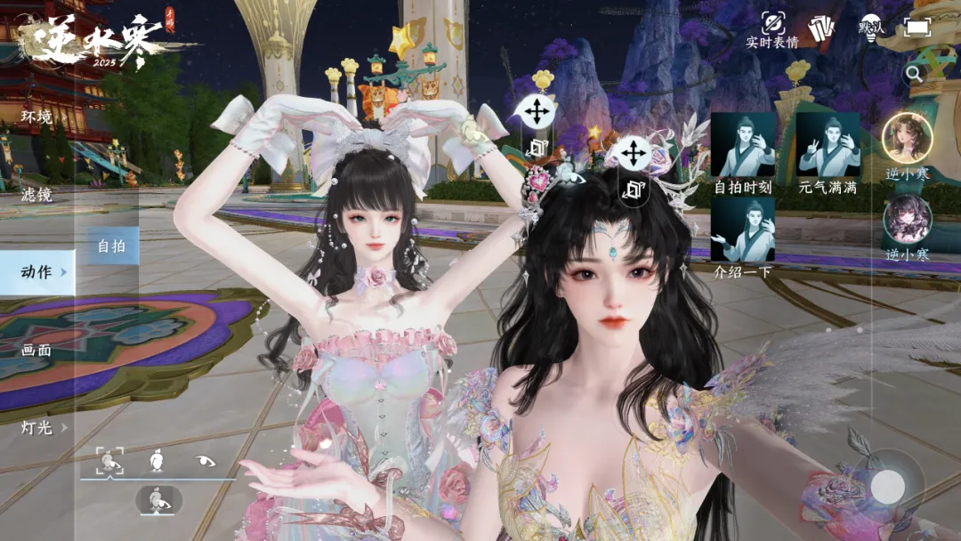 活动中,大家可以邀请好友使用自拍合影留念!合影发起者可以调整两人的动作和视线,同时,头部方向和视线方向也能分开调整啦~