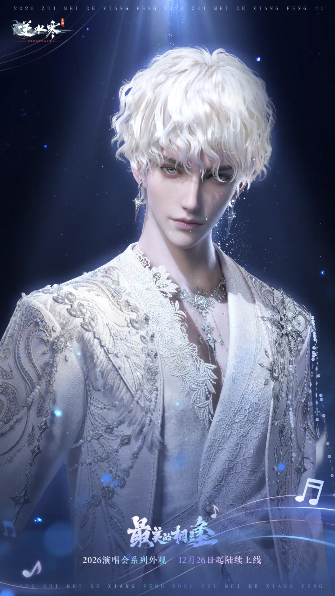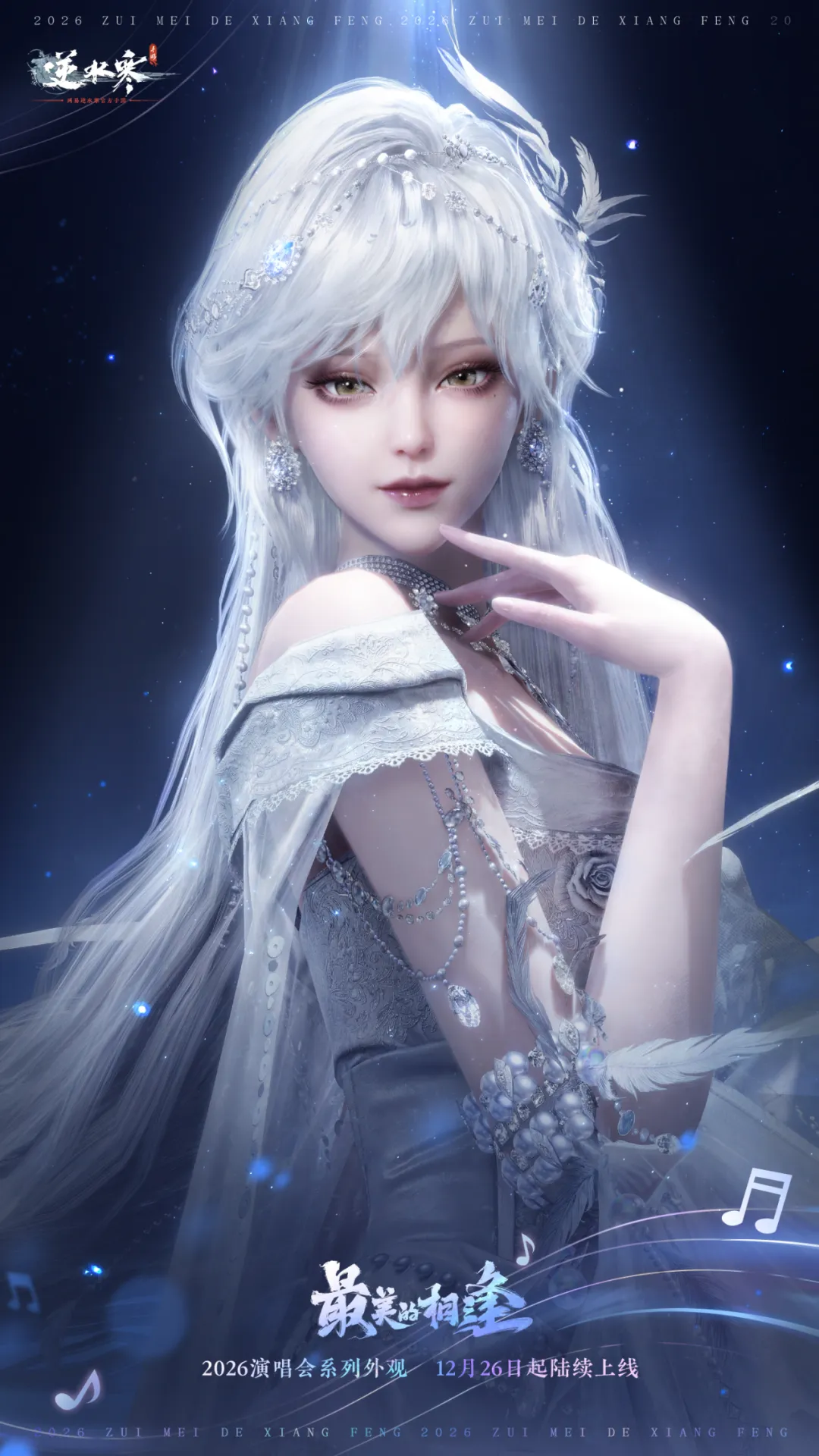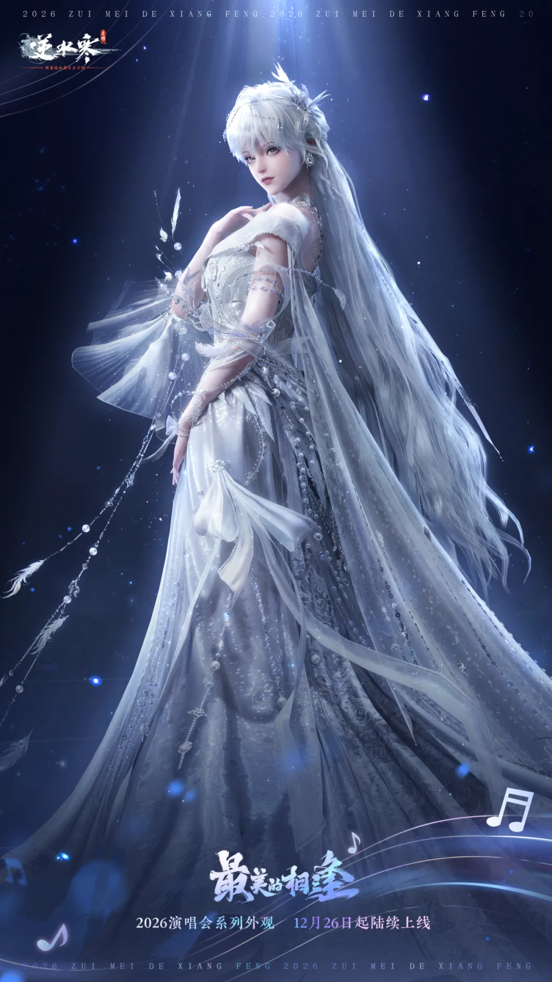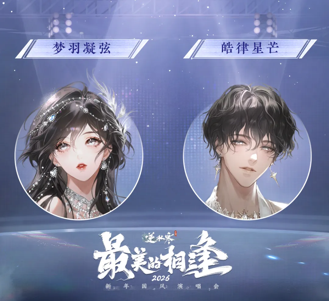 12月27日(星期六)至2026年2月6日零点,逆水寒演唱会主题时装【皓律星芒/梦羽凝弦】将限时上架商城,直售价【2880纹玉】,可使用限定纹玉、代金券、半价券。获取时装后,各位同门还将同步解锁黑发头像、单人动作、双人动作以及群龙之首动画。