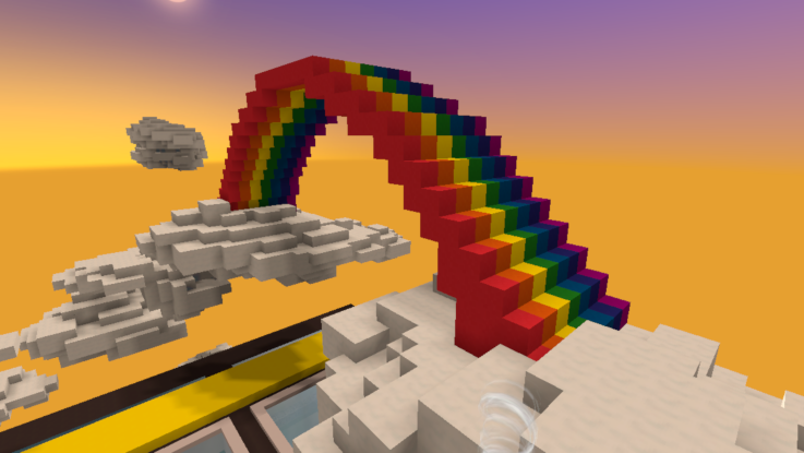 彩色工坊是一个以彩虹为主题的区域,整个场景隐藏在云海深处,梦幻异常。这里拥有全《手工星球》最丰富的颜色——巨大的彩色柳树、架在云端的彩虹桥……
