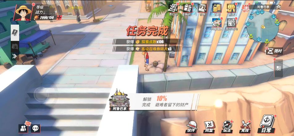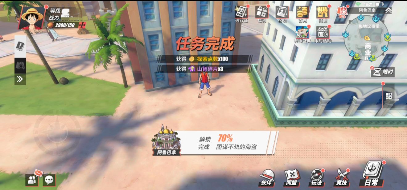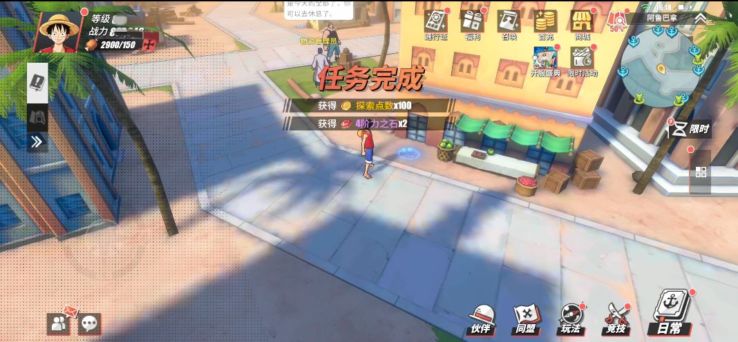 玩家需要来到商业街的上面,这里会有一个NPC“图谋不轨的海盗”,玩家与他对话,之后会进行战斗。在赢得胜利后,玩家可以获得探索点数x100和3枚山治碎片。