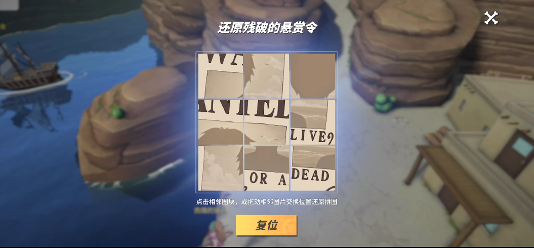 悬赏令中一张残破的图片,玩家需要通过移动相邻的图片的位置来还原拼图。还原拼图之前,玩家先记住原图的样子,然后一张一张移动,最终完成拼图。完成拼图即可获得悬赏令奖励,获得3张高级召唤卷碎片。