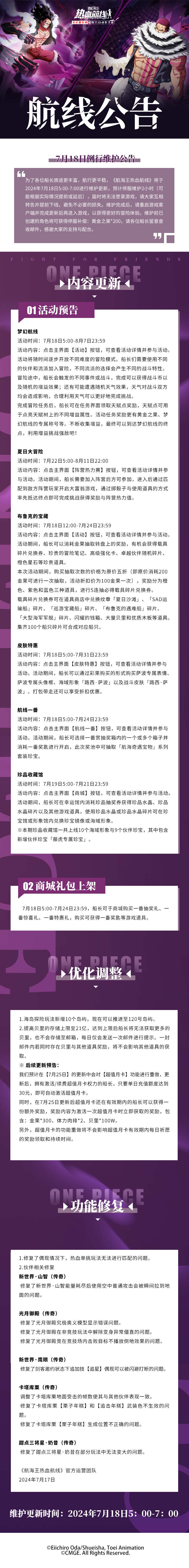 航海王热血航线7月18日例行维护公告