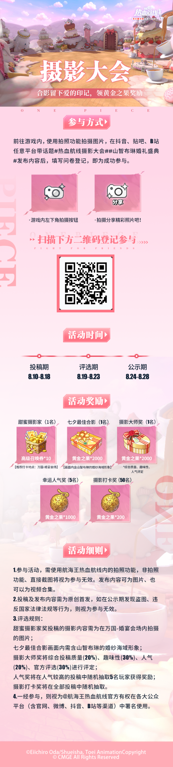 船长们可以使用游戏内的拍照功能自由拍摄创作有趣的照片,在任意平台发布并填写问卷登记,即有机会赢得惊喜好礼!⭐活动时间⭐