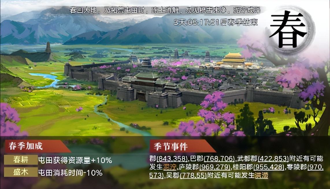 并且季节系统中,将开放灾害预警功能,主公们后续可根据季节事件,提前规划进攻或防御计划,巧用天时,御敌制胜。