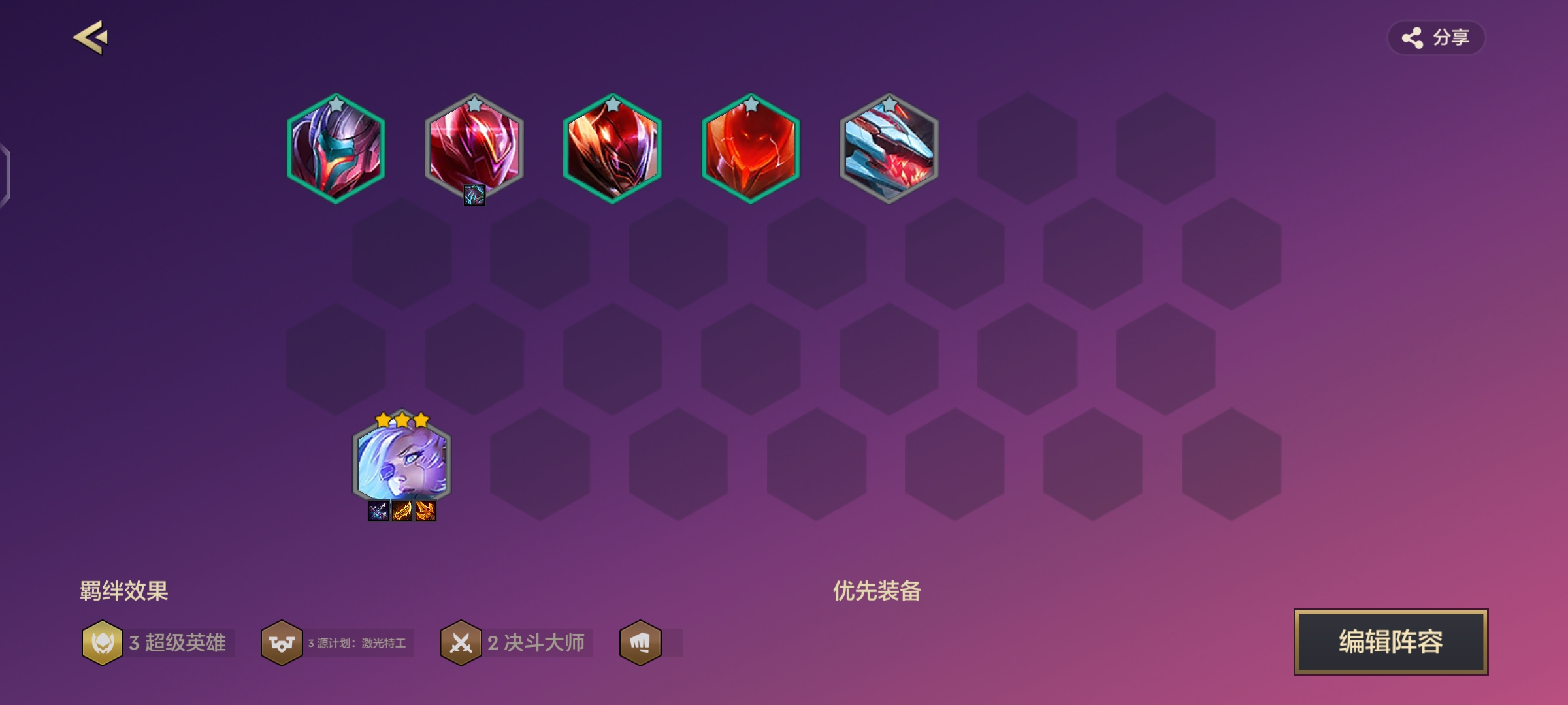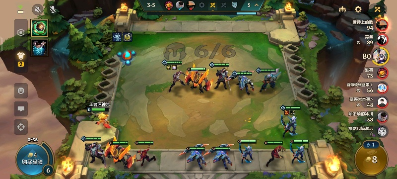 3-5达成了6人口,阵型基本成型,就等装备和发牌了
