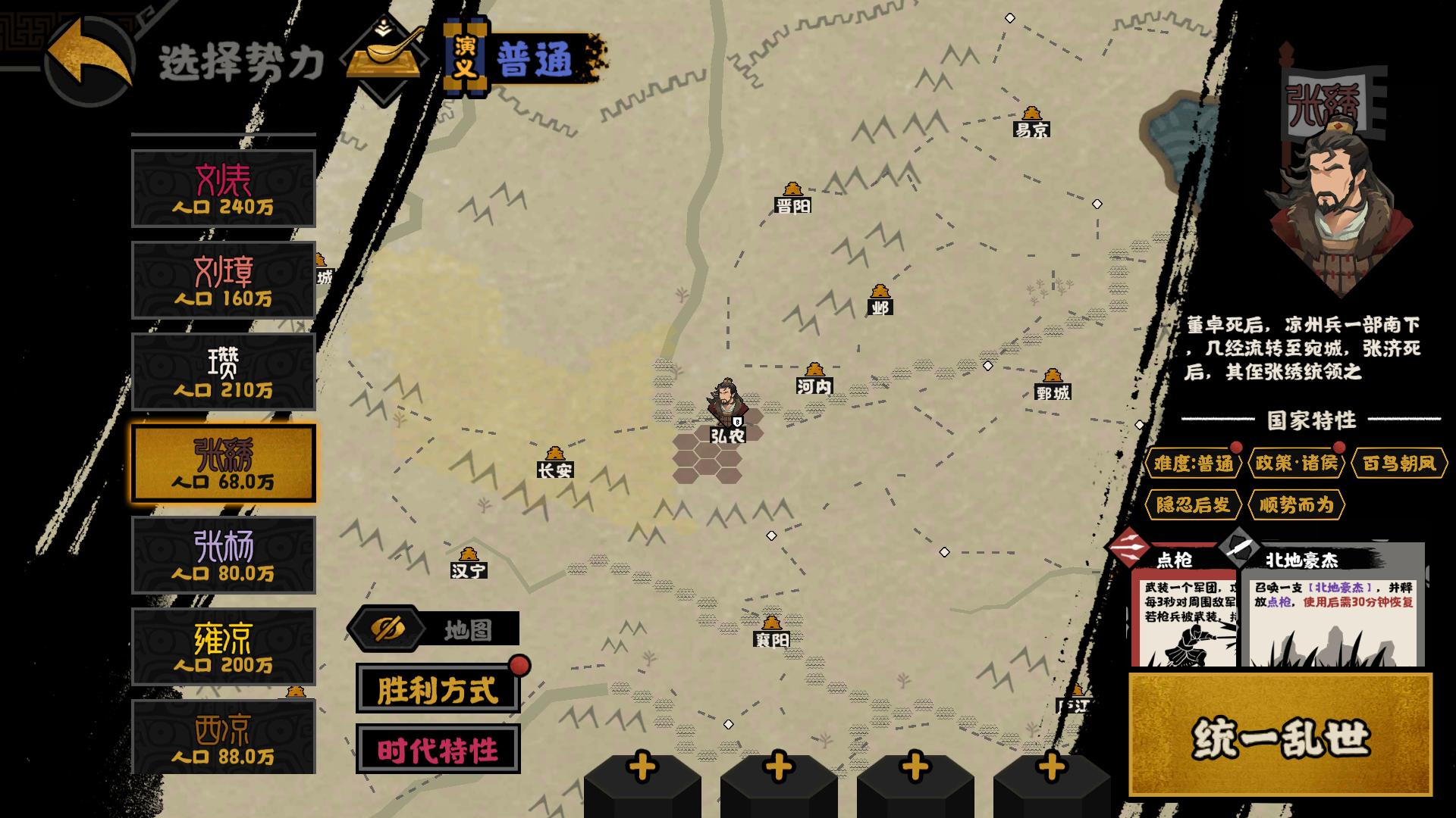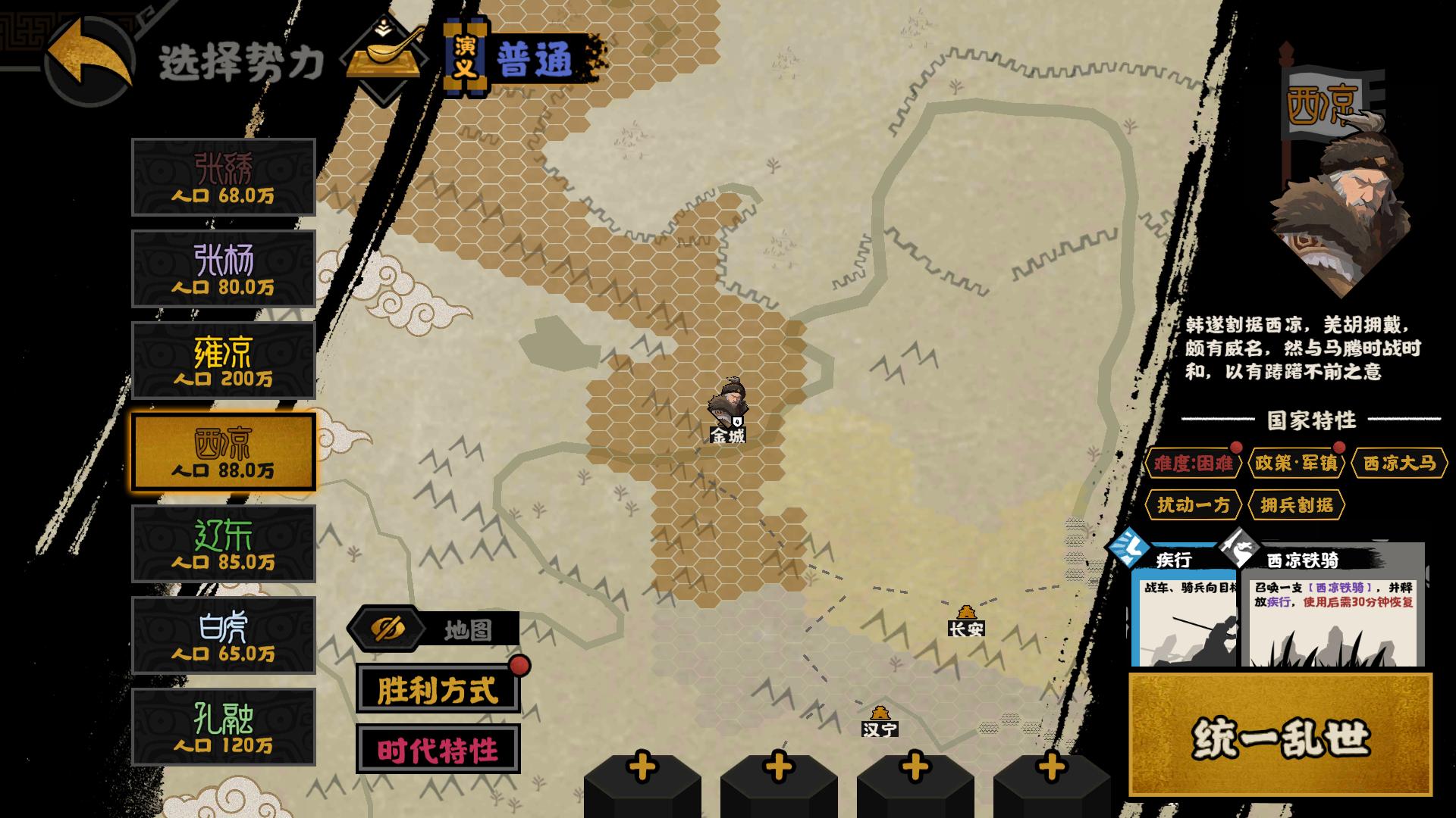 国家特性:「政策·军镇」「西凉大马」「扰动一方」「拥兵割据」