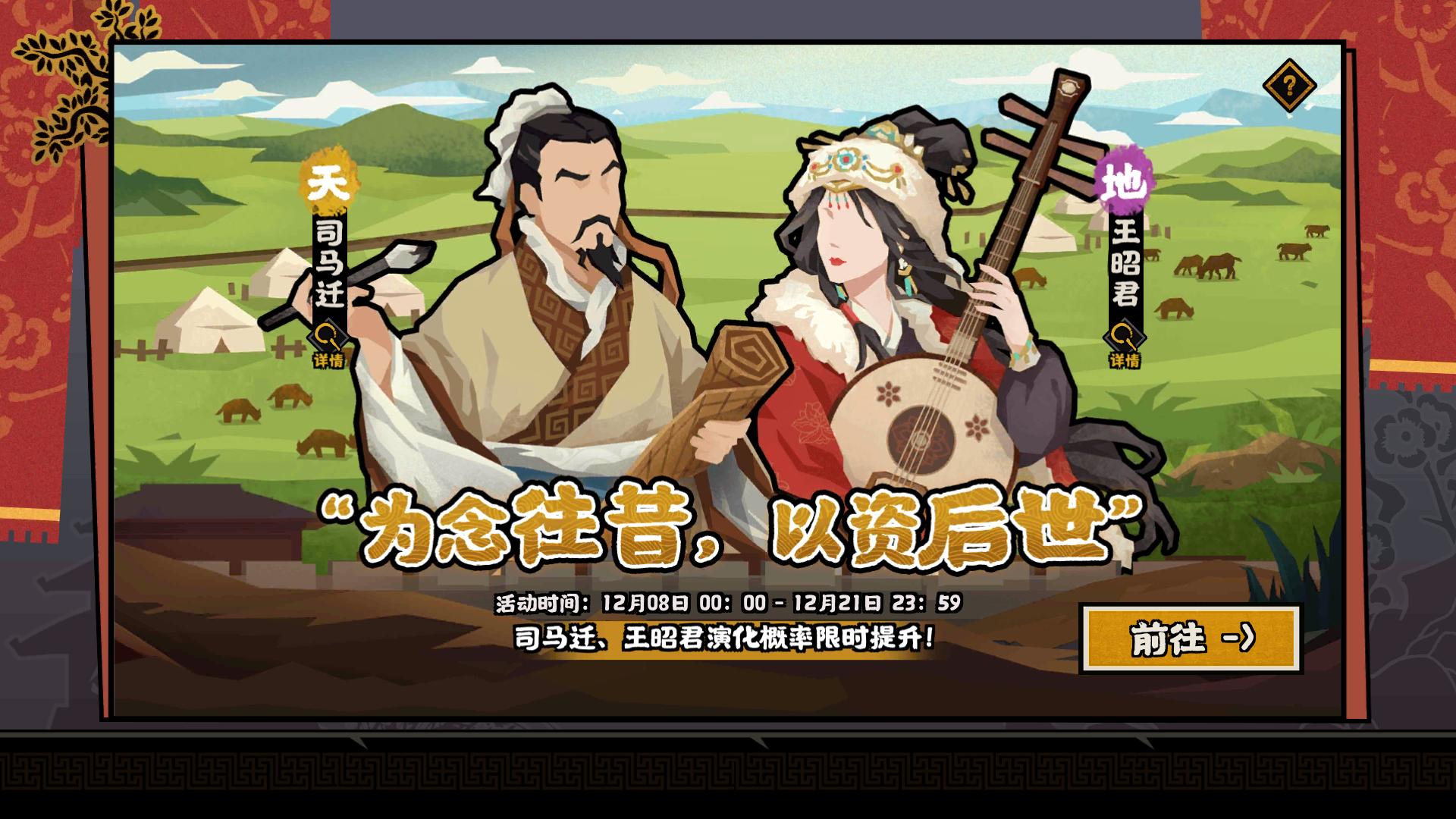 「太史公-司马迁」与「落雁美人-王昭君」演化概率限时提升!“为念往昔,以资后世”。