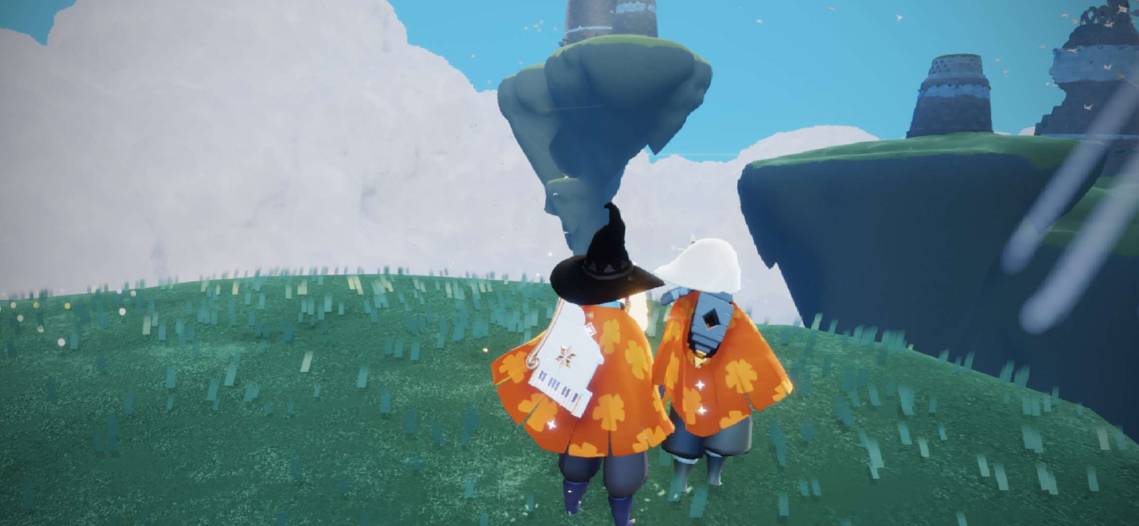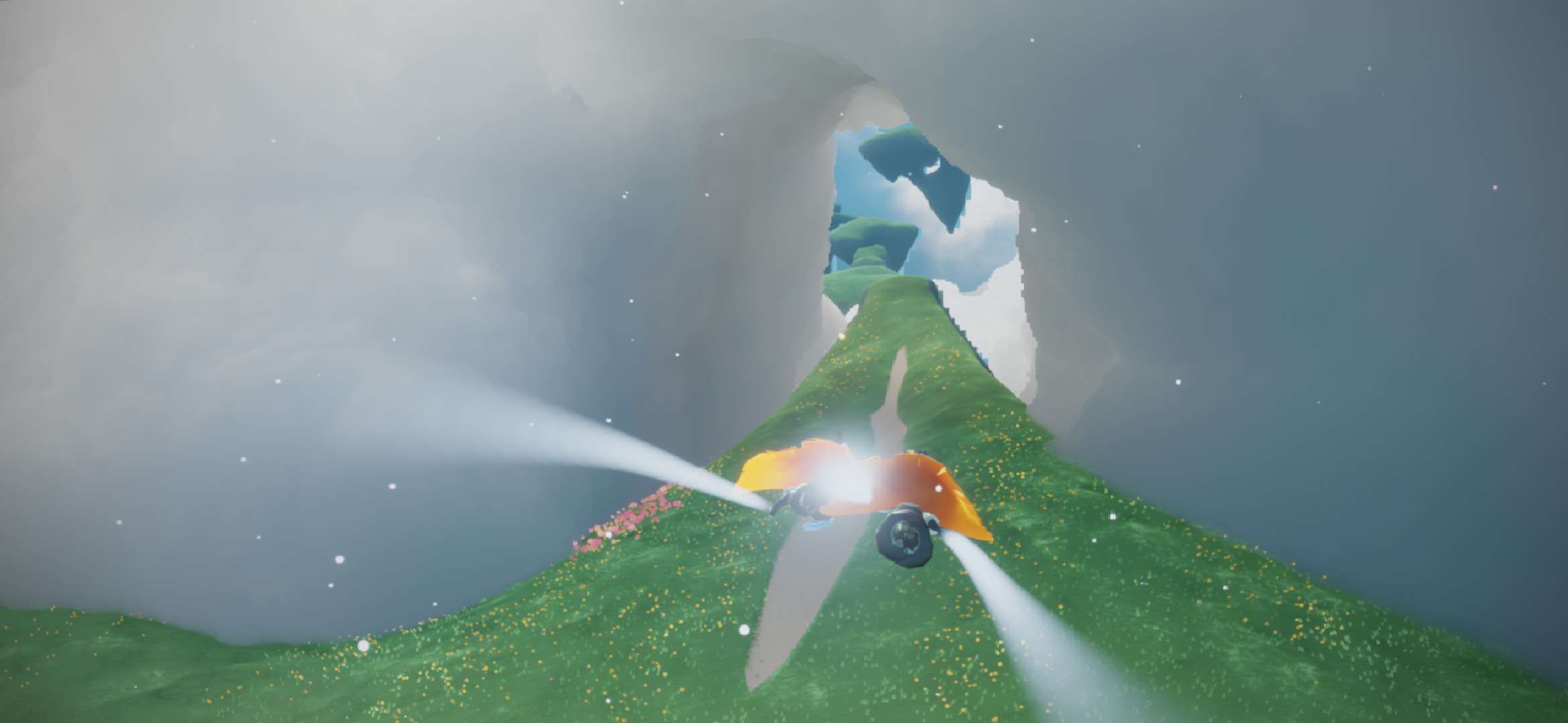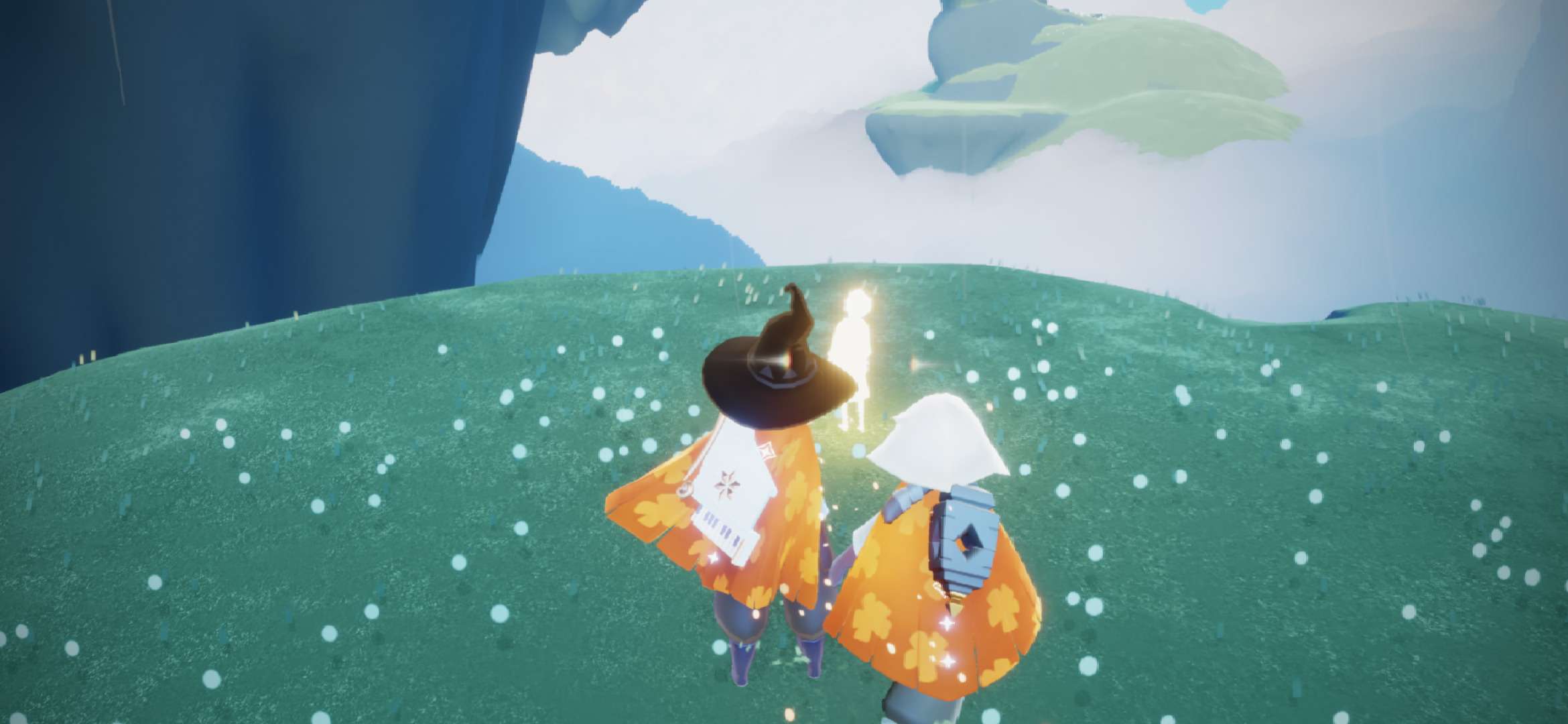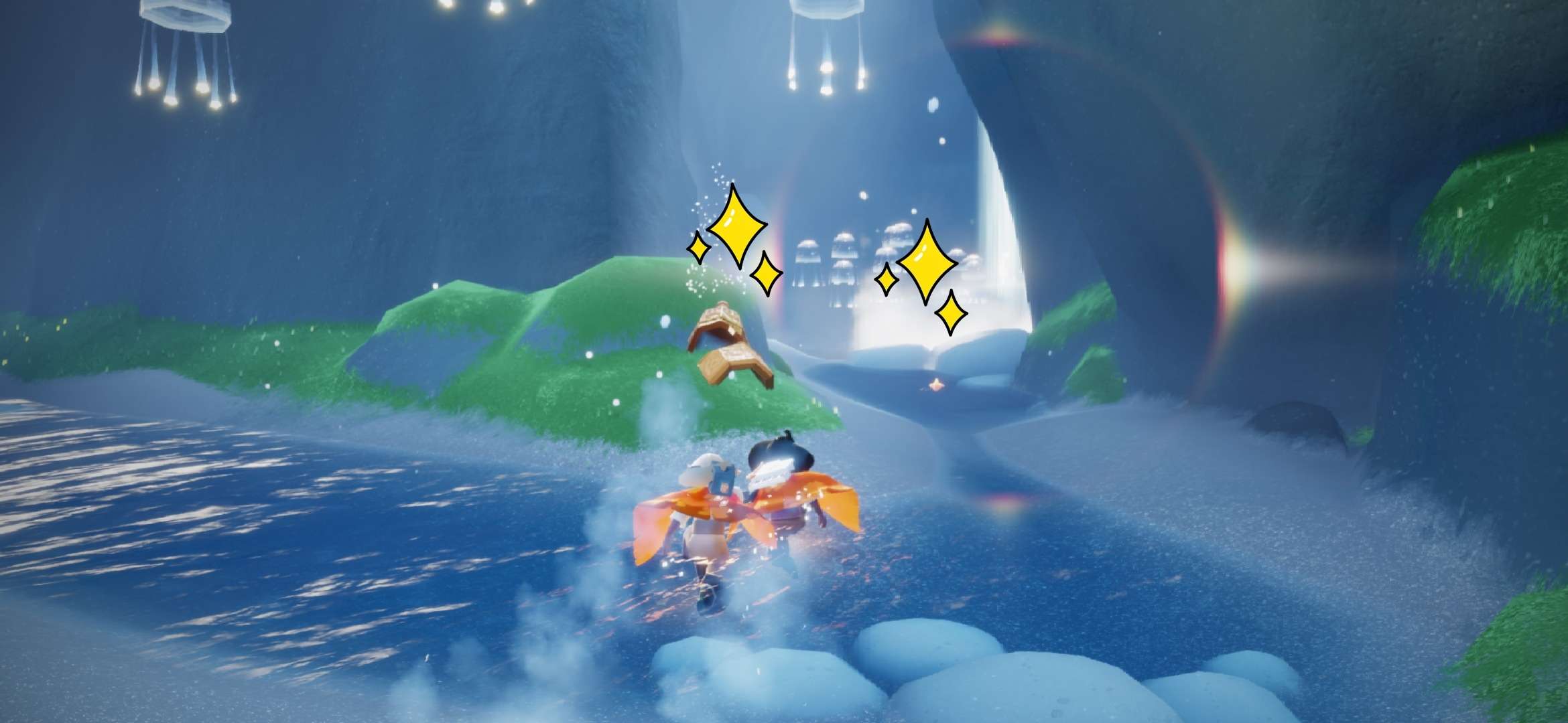 进来就可以看见一个流水浮岛啦,上面有一个光翼哦